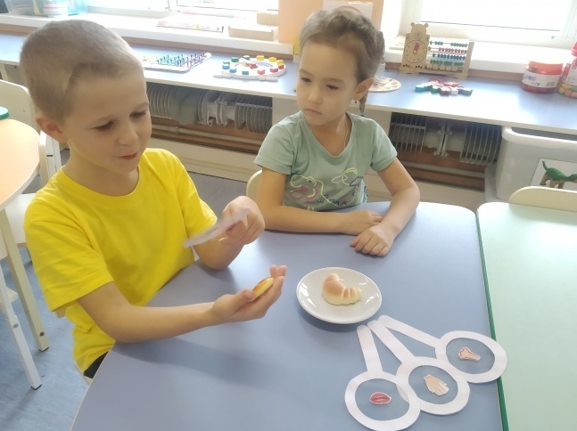 Воспитатель: - Давайте рассмотрим эти предметы с помощью «Волшебной лупы», какие они по форме, размеру, цвету, запах, вкус и т. д? (ответы детей)
