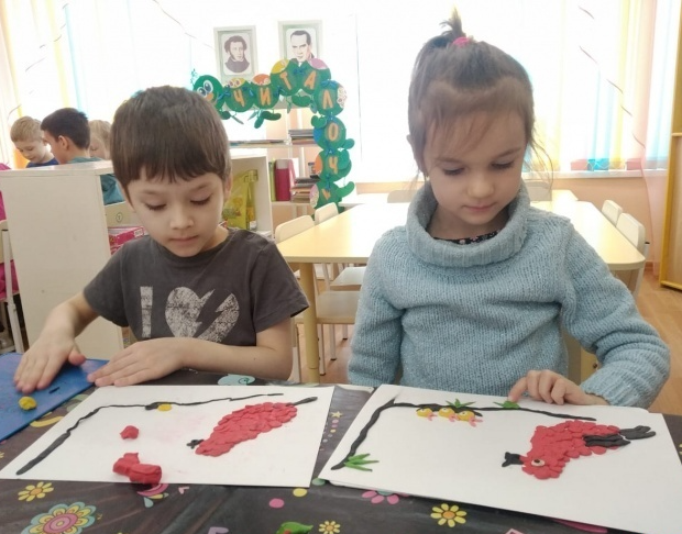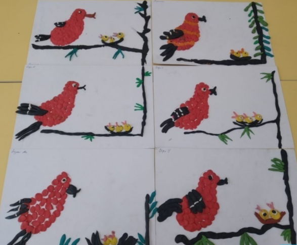 Материал для занятия: картон белого цвета; набор пластилина; салфетки для рук; доска для лепки; стека; фотоиллюстрации с изображением птицы клест.