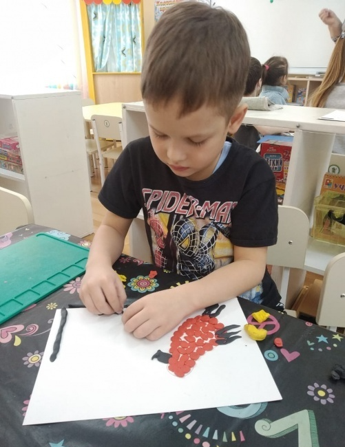 Воспитатель: Садимся на свои места и приступаем к рисованию пластилином. Спинки держим ровно, работу выполняем поэтапно.