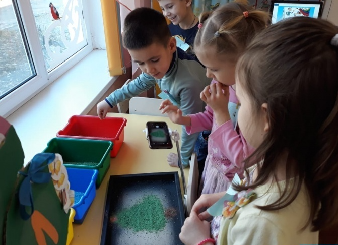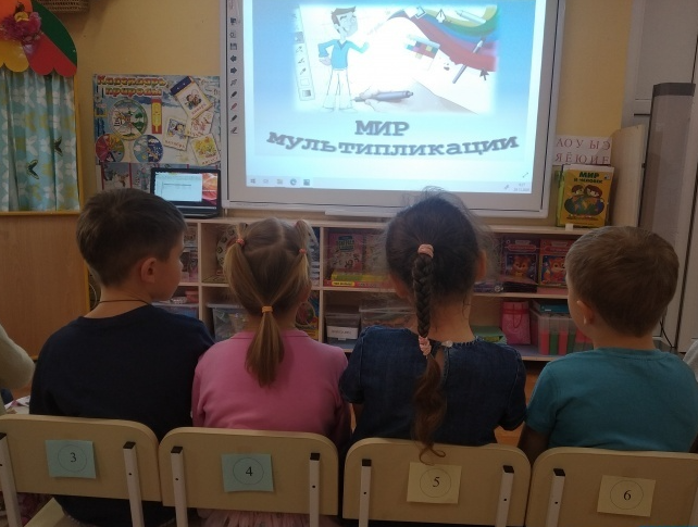 Воспитатель: Ребята, мы прибыли на первую станцию - «Кинотеатр». Занимайте свои места в зрительном зале. Нас ждет интересный фильм про историю мультфильмов.