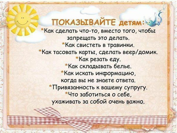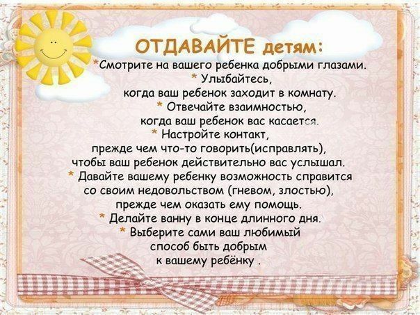 7. Не мучь себя, если не можешь сделать что-то для своего ребенка. Мучь, если можешь — но не делаешь. Помни, для ребенка сделано недостаточно, если не сделано все.