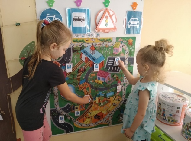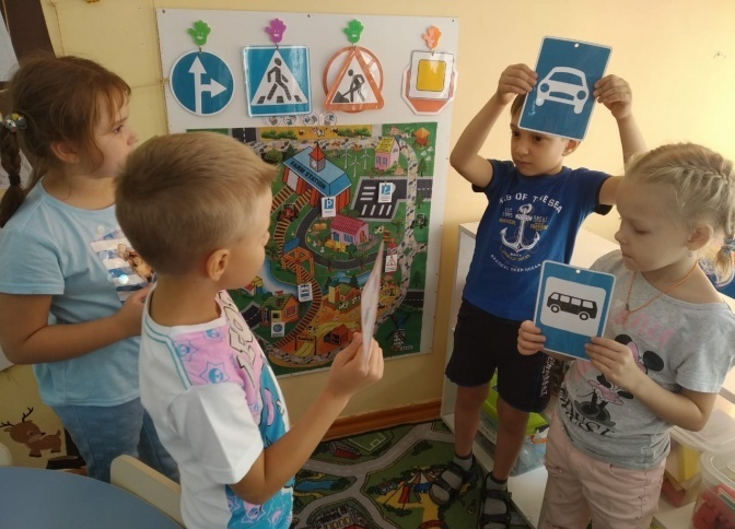 На данном этапе проводится работа по ознакомлению дошкольников с правилами дорожного движения посредством занятий, бесед, дидактических, сюжетно-ролевых и подвижных игр, загадывания загадок, чтения художественной литературы. Приглашение родителей к участию в создании атрибутов для игр и совместной творческой деятельности с детьми.