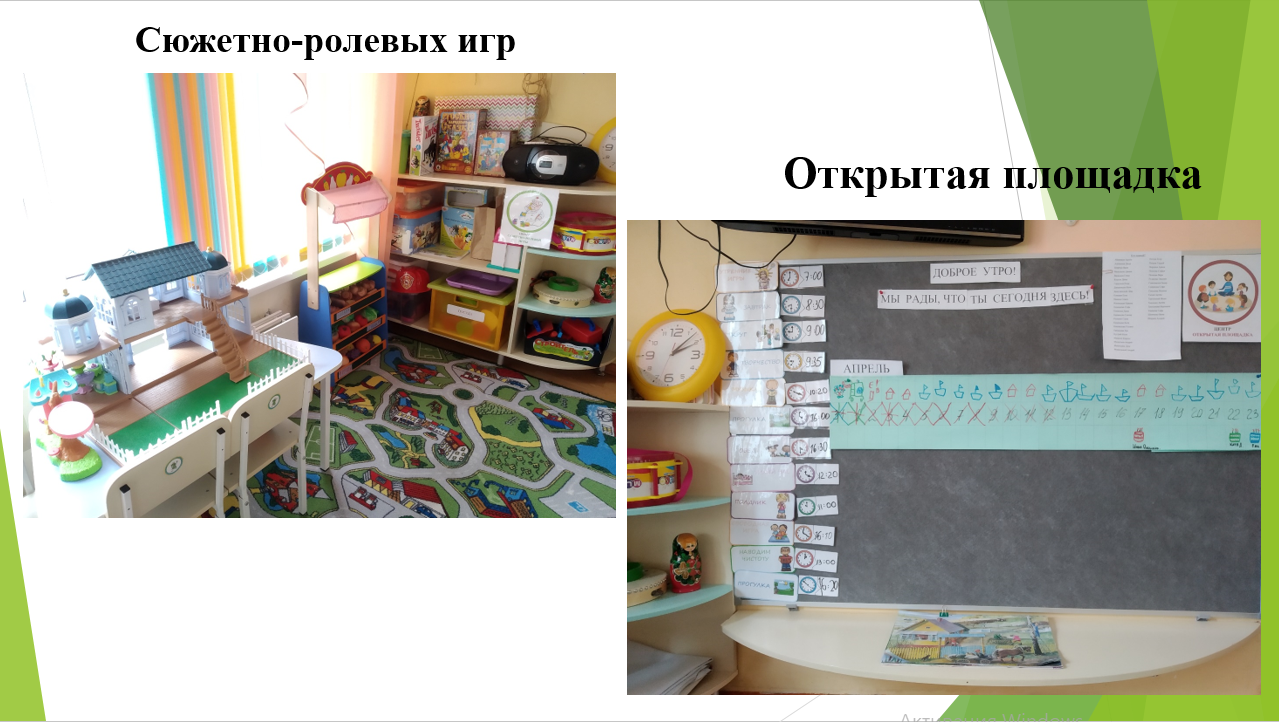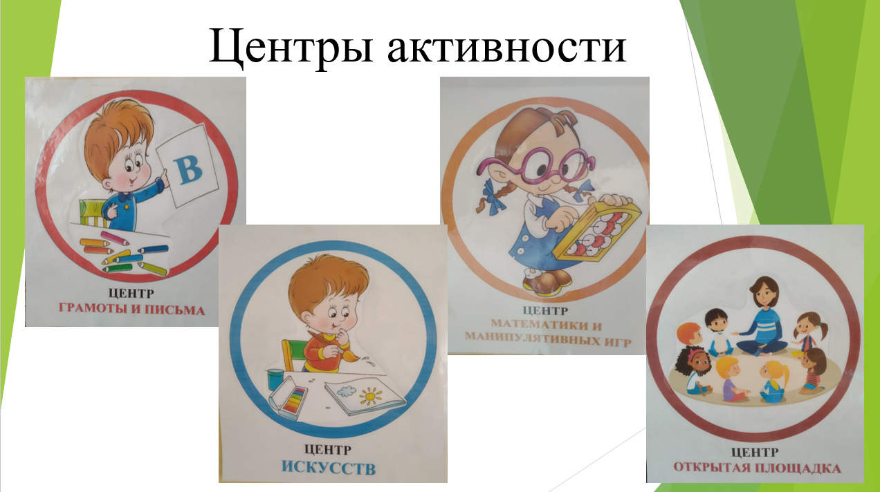 Организация предметно-пространственной среды группы началась с определения центров активности, расположение их по правилу «соседства».