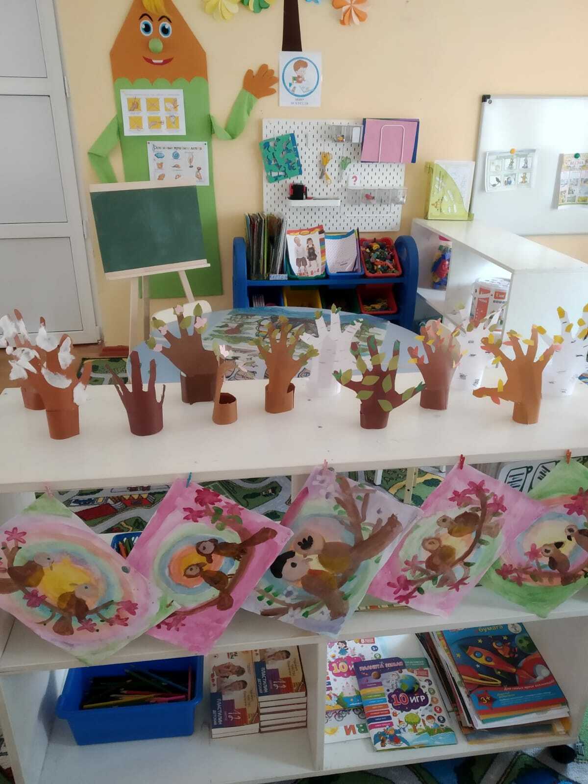 Организовано размещение детских рисунков и работ на уровне глаз детей.