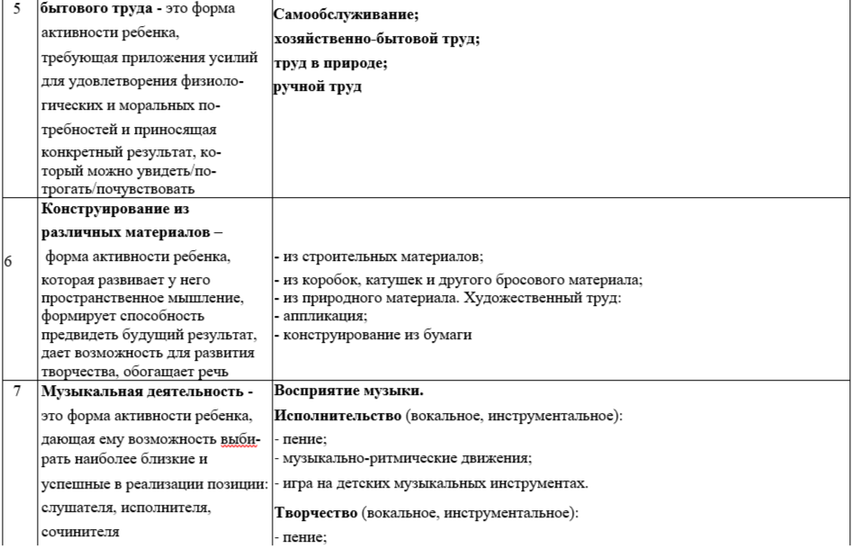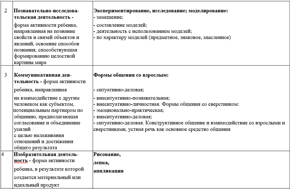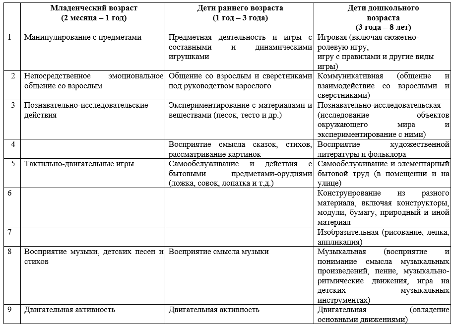 Виды детской деятельности в соответствии с ФГОС ДО